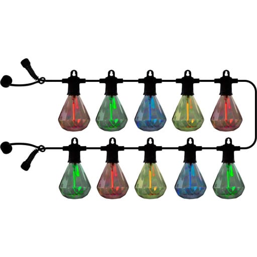 Udendørs lyskæde med diamant pærer Giv dit udendørsrum et løft med denne udendørs lyskæde forlængersær, som kombinerer dekorativt design med behageligt, varmhvidt lys. De klare, diamantformede pærer skaber et festligt og samtidig roligt udtryk, som passer