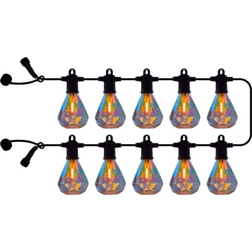 Udendørs lyskæde med diamant pærer Giv dit udendørsrum et løft med denne udendørs lyskæde forlængersær, som kombinerer dekorativt design med behageligt, varmhvidt lys. De klare, diamantformede pærer skaber et festligt og samtidig roligt udtryk, som passer
